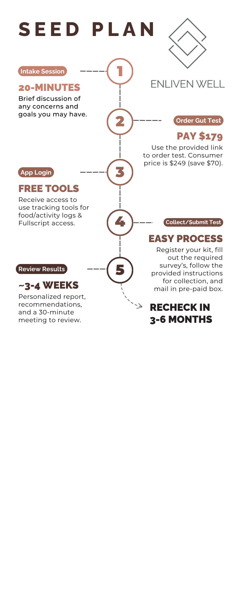 My Story: Personally, I have overcome a variety of gut-related challenges, including Irritable Bowel Syndrome (IBS-C) with poor gut motility and hormone imbalances, resulting in Small Intestinal Bacteria Overgrowth (SIBO), impaired digestion, nutrient deficiencies, and chronic acne. When my daughter Evelyn was born, she had a “leaky gut,” resulting in numerous food sensitivities, illness, irritability, and poor sleep. A lot of what I know now is a result of learning how to help myself and her by going back to school for nutrition, becoming professionally trained. Diving deeper into the world of functional nutrition has forever changed my families’ lives. I hope to share my knowledge to help better the lives of your family too, from youngest to oldest. Although each person’s journey is never the same, I can empathize with your struggles, celebrate your successes, and guide you until you feel “alive and well.” My company, E(vely)NLIVEN & WELL, is the product of love, life, and triumphs toward one’s greatest version of wellness.In good health,